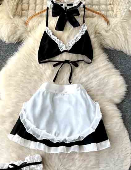 تتكون من قميص صدر فضفاض قصير مع سوار، تنورة قصيرة جذابة و سترينغ داخلي